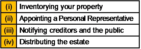 You are an Estate Planner. A client asks you to explain him the process of Probate. You explain him that Probate is one of the ways to pass ownership of estate property to a decedent's survivors. The client further asks you to outline the various steps of Probate. As an estate planner, you would outline the steps of probate as follows (please specify the correct order)