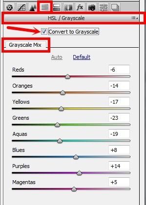 - Use controls in this tab to specify the contribution of each color range to the grayscale version of the image.