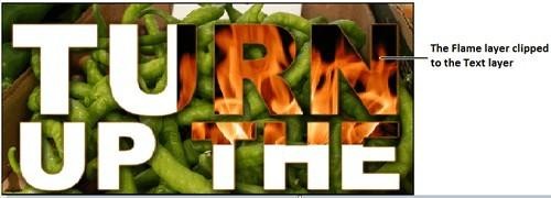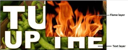 You work as a graphic designer for WEBDESIGN Inc. You are working on below given image in Adobe Photoshop CS6. You want to clip the Flame layer to the Text layer which is placed below it. Which of the following methods will you choose to accomplish this task?