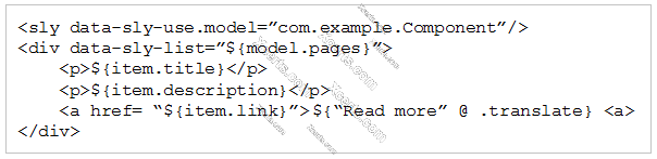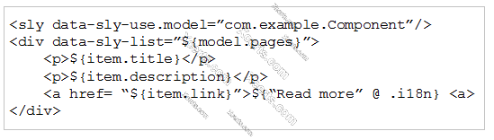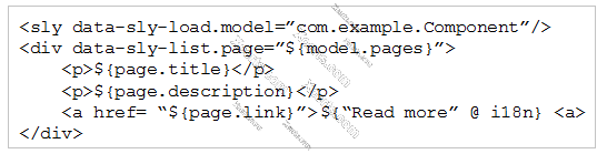 A developer is creating a custom component that shows a list of pages. For each page, the following items must be shown: