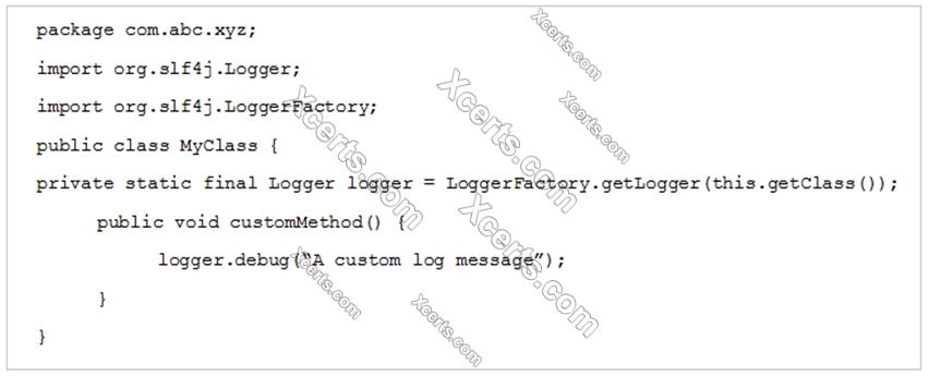 A developer needs to analyze log messages for custom Java application. The developer writes the following Java class: