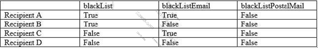 An email and direct mail is sent with the below recipient as the target. Their blacklist is shown below.