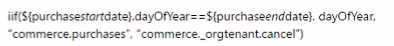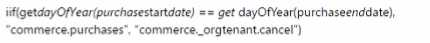 A data engineer is ingesting the transactional information from an ecommerce platform through a daily feed. In AEP, one Experience Event-based schema will collect the purchase events from this feed.The eventType field of the schema must be populated with "commerce.purchases' if in a CSV record in which the column 'pure ha sesf arid ate' and 'purchaseenddate" happen on the same day, If the "purchasee/irfdate" is set to a later date, the eventType should be *commerce._orgtenant.cancer. Both dates follow the same format "yyyy-MM-dd'T'HH:mm:ss.SSS'Z~. and the "purchaseenddate' is always populated.How should the data engineer create a Calculated Field that can be used to populate the eventType according to the required logic?A)B)C)D)