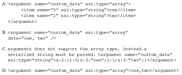 How do you pass an array [`one', `two] as a parameter to you block using the layout XML arguments directive?