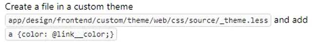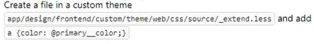 An Adobe Commerce developer wants to use LESS variables to make the default color of the text links match the default color of the body text.