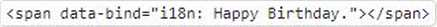 An Adobe Commerce developer is working on a custom knockout Ul component and they need to add the text Happy Birthday, to be translated inside an .html template.