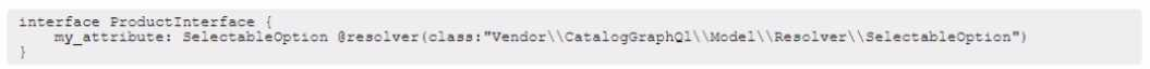 Later, the Architect sees that Productinterface already has the field my_atcribute, but returns an mc value. The Architect wants this field to be a new type that contains both option id and label. To meet this requirement, an Adobe Commerce Architect creates a new module and file etc/schema.graphqls that declares as follows: