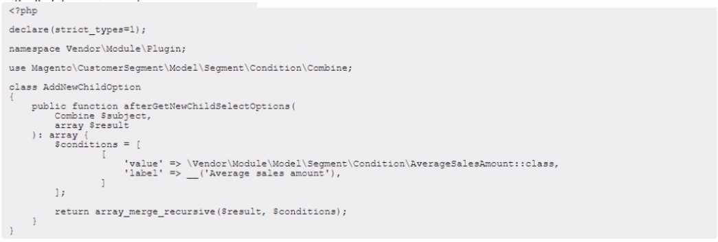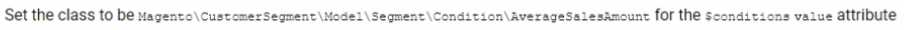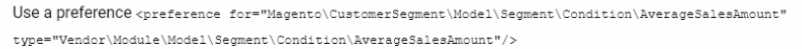 An Adobe Commerce Architect needs to create a new customer segment condition to enable admins to specify an 'Average sales amount' condition for certain segments.