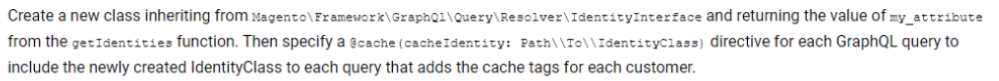 An Architect working on a headless Adobe Commerce project creates a new customer attribute named my_attribure. Based on the attribute value of the customer, the results of GraphQI queries are modified using a plugin. The frontend application is communicating with Adobe Commerce through Varnish by Fastly, which is already caching the queries that will be modified. The Adobe Commerce Fastly extension is installed, and no other modifications are made to the application.