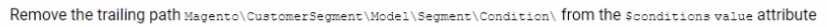 Magento\CustomerSegment\Model\Segment\Condition\Combine\Interface interface. The class must also have a constructor that accepts an array of data and a context object that contains the required dependencies. Therefore, option B is correct because the constructor is missing the context object parameter. Option E is also correct because the class does not implement the required interface. The other options are not relevant for this problem.