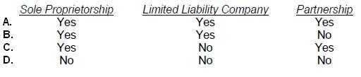 Choice "b" is incorrect. A limited liability partnership is primarily designed for professionals who want to work as partners but with limited personal liability. Choice "c" is incorrect. Sole proprietorships have only one person in the business.