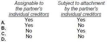 Rule: A partner's interest in specific partnership property is neither assignable to the partner's individual creditors nor is it subject to attachment by the partner's individual creditors. Choices "a", "b", and "c" are incorrect, per the above rule.
