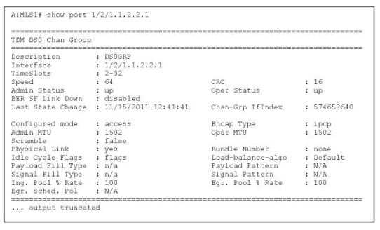 2. On STS1-1, the second DS1 channel group in the second VTG is operationally up