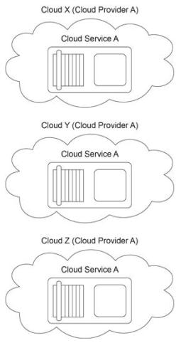 1. Redundant implementations of Cloud Service A are deployed in all three clouds. The failover system mechanism and a special type of automated scaling listener mechanism are implemented to establish a system whereby one redundant Cloud Service A implementation will automatically take over from another.