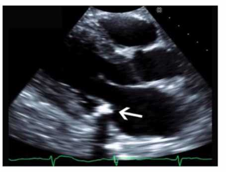 Which echogenic structure is indicated by the arrow on this image?