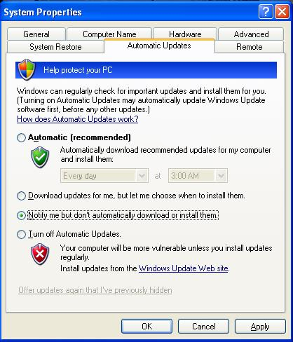 4. Turnoff Automatic Updates