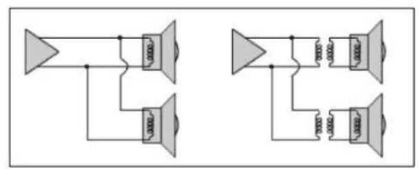 The circuit on the RIGHT is an electrical drawing of what type of speaker system?