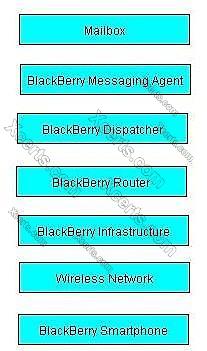 What is the correct message flow for an email message going from the mailbox to the BlackBerry smartphone? Place the steps in the correct order by dragging them from the left to the right.