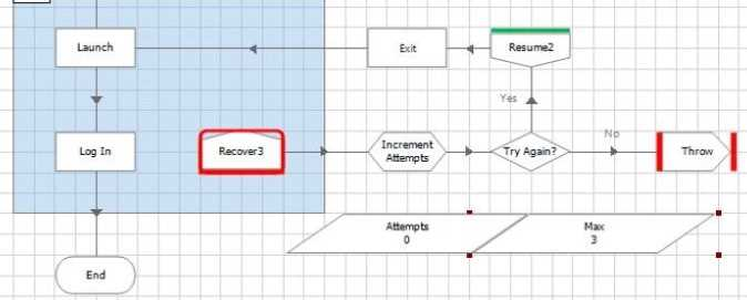 Data Item 'Attempts' is a number data item with an initial value of 0 Data Item "Max Attempts" is a number data item with an initial value of 3 The 'Increment Attempts' calculation stage add 1 to the attempts value and outputs a result to the "Attempts" data item