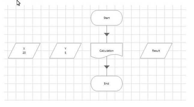 · X is a Number data item with an initial value of 20 · Y is a Number data item with an initial value of 5