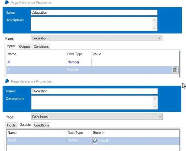 This is the Mam Page of a simple process which calls the Page Calculation before completing The data items are configured as follows: