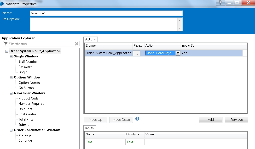 When entering an option within the Training Order system the relevant option number is entered into the Option number field as below The Option number input field has been spied in Blue Prism: