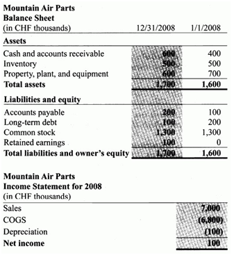 The Swiss franc (CHF) is the official currency in Switzerland. On January 1, 2008, the USD/CHF exchange rate was 0.77. At December 31, 2008, the exchange rate had changed to 0.85 USD/CHF. The average exchange rate in 2008 was 0.80 USD/CHF. In its first year of operations. Mountain paid no dividends and no taxes. Mountain uses the FIFO assumption for its flow of inventory.