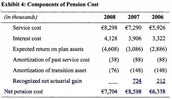 Assume for this question only that economic pension expense for the year ended 2008 was €4,250. Ignoring income taxes, which of the following statements best describes the adjustment necessary for analyzing Global Oilfield's cash flow statement?