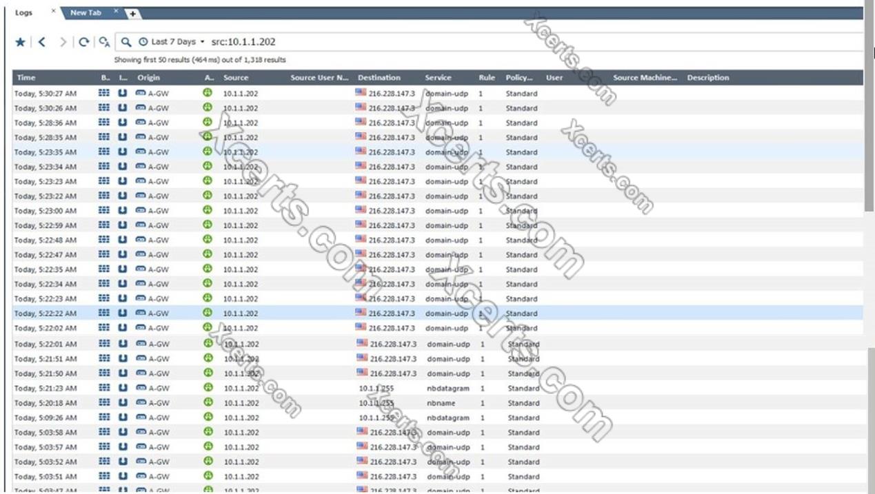 1. View from SmartLog for logs initiated from source address 10.1.1.202