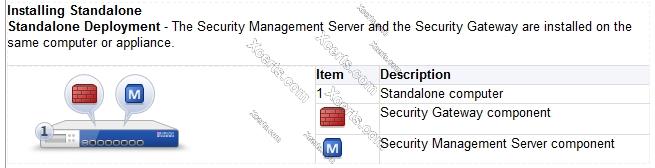 Standalone Deployment - The Security Management Server and the Security Gateway are installed on the same computer or appliance.