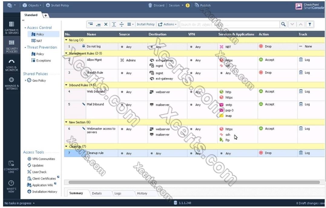 On top of the print screen there is a number "8" which consists for the number of changes made and not saved. Session Management Toolbar (top of SmartConsole)
