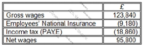 The Employers' National Insurance for the period was $13,790. An analysis of the wages is as follows: