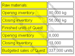 Each unit of Quest requires 6kg of raw materials. Strict quality control procedures are applied to the manufacturing process and normal rejection levels are 5% of finished units.