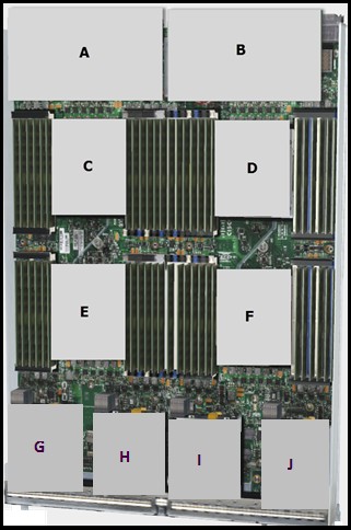 1. A is power button and power status LED; B is identification button and LED; C is system status LED; D is network link activity LED.