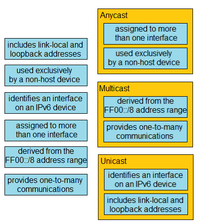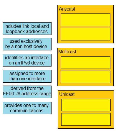 Drag and drop the IPv6 address details from the left onto the corresponding types on the right.