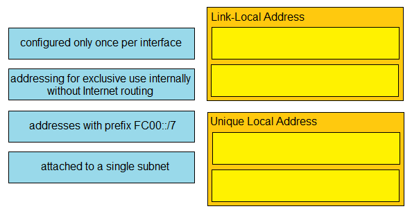 Drag and drop the IPv6 address type characteristics from the left to the right.