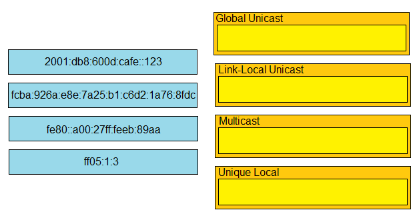Drag and drop the IPv6 addresses from the left onto the corresponding address types on the right.