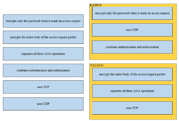 Drag and drop the functions of AAA supporting protocols from the left onto the protocols on the right.