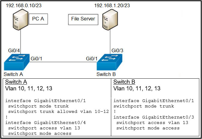 Refer to the exhibit. A network engineer must configure communication between PC A and the File Server. To prevent interruption for any other communications, which command must be configured?