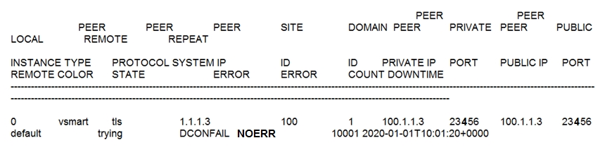 Refer to the exhibit. The control connection is failing. Which action resolves the issue?