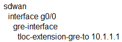 A network administrator is configuring a tunnel interface on a branch Cisco IOS XE router to run TLOC extensions. Which configuration will extend a TLOC over a GRE tunnel to another router in the branch?