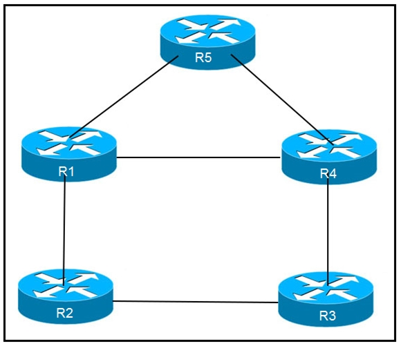 links are running on FastEthernet, except the link between R5 and R4, which is Gigabit Ethernet. Which statement about the design is true?