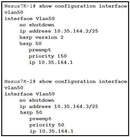 Refer to the exhibit. HSRP adjacency fails to form between Nexus7K-1 and Nexus7K-2. Which action shouldbe taken to solve the problem?