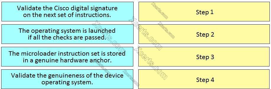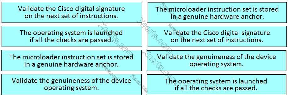 Drag and drop the mechanisms of Cisco Secure Boot from the left into the correct order on the right.