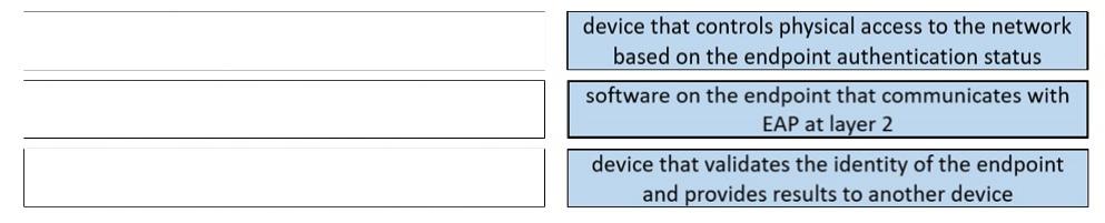 Drag the descriptions on the left onto the components of 802.1X on the right.
