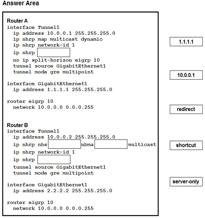 Drag and drop the correct commands from the right onto the blanks within the code on the left to implement a design that allow for dynamic spoke-to-spoke communication. Not all commands are used.