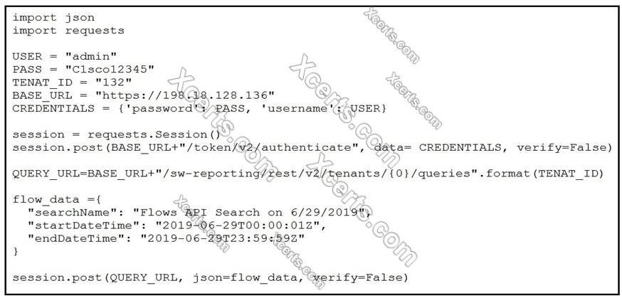 Refer to the exhibit. A network operator must generate a daily flow report and learn how to act on or manipulate returned data. When the operator runs the script, it returns an enormous amount of information.