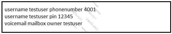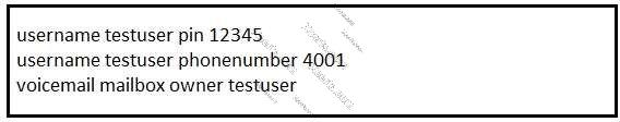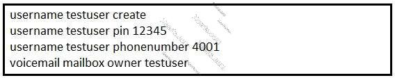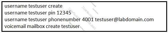 An engineer must configure a test user mailbox in a newly deployed Cisco Unity Express module. Which console command set reflects the correct configuration in this scenario?