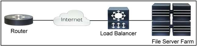 Refer to the exhibit. Which two functions are performed by the load balancer when it handles traffic originating from the Internet destined to an application hosted on the file server farm? (Choose two.)