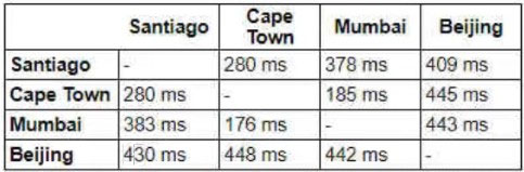 ACME Mining has four data centers in Santiago, Cape Town, Mumbai, and Beijing, full-mesh connected via a 400 Mb/s EVP-LAN. They want to deploy a new mission-critical application with these requirements: